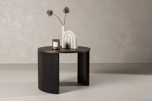 Runder Couchtisch Bristol aus Eschenholz und MDF in Dunkelbraun, Ø60cm