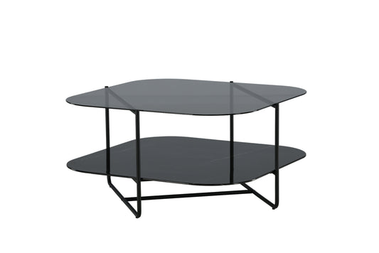 un-line Sofatisch aus Glas und Stahl in Schwarz/Gold
