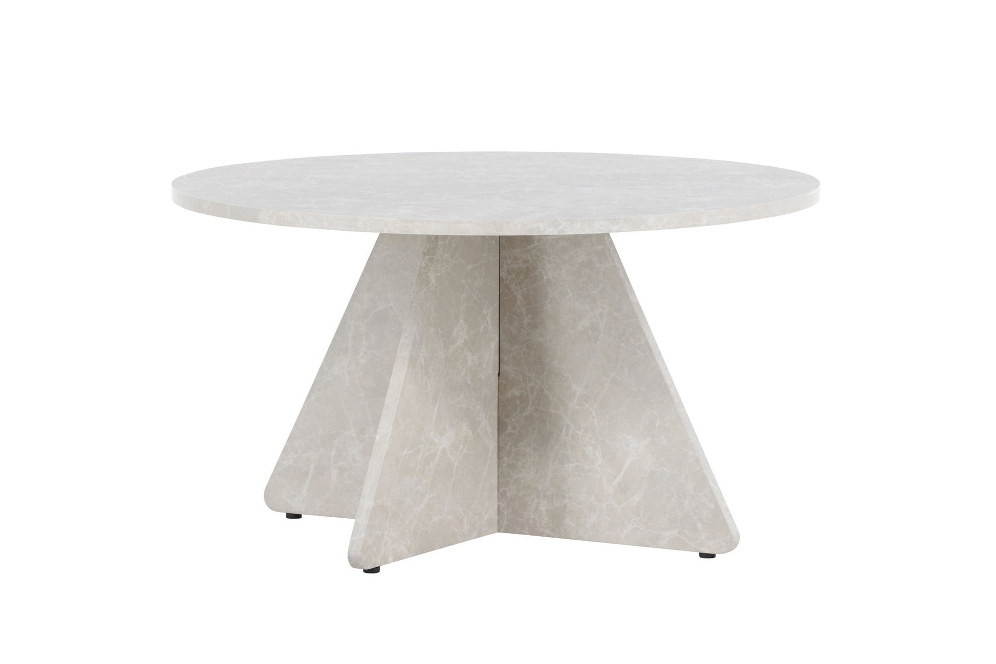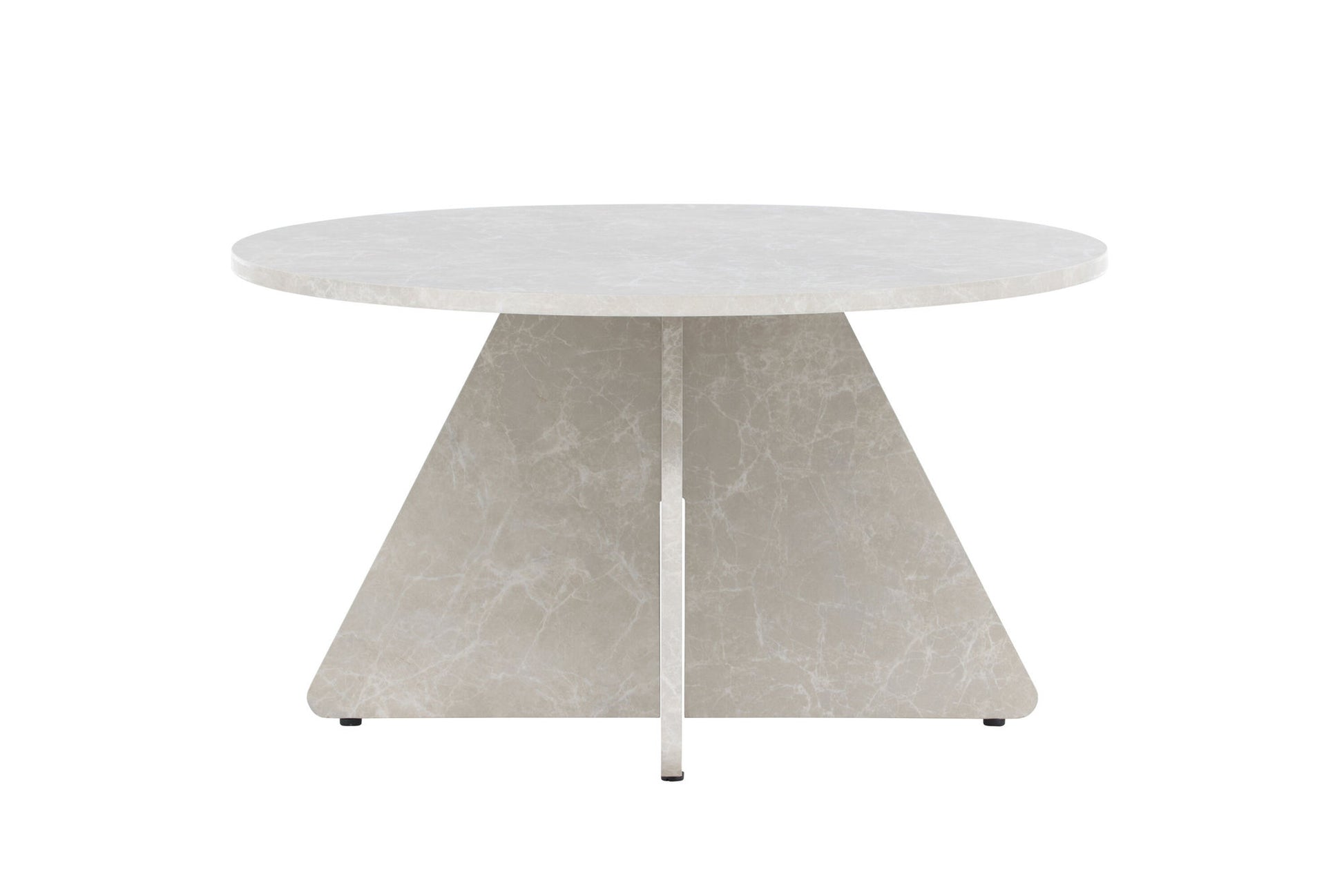 Der Bootcut Couchtisch vereint klare Formensprache mit einer eleganten Marmor-Optik in hellem Beige. Durch die runde Tischplatte und das auffällige, ausgestellte Untergestell entsteht eine skulpturale Wirkung, die dem Tisch eine ruhige, aber charaktervolle Präsenz verleiht.
