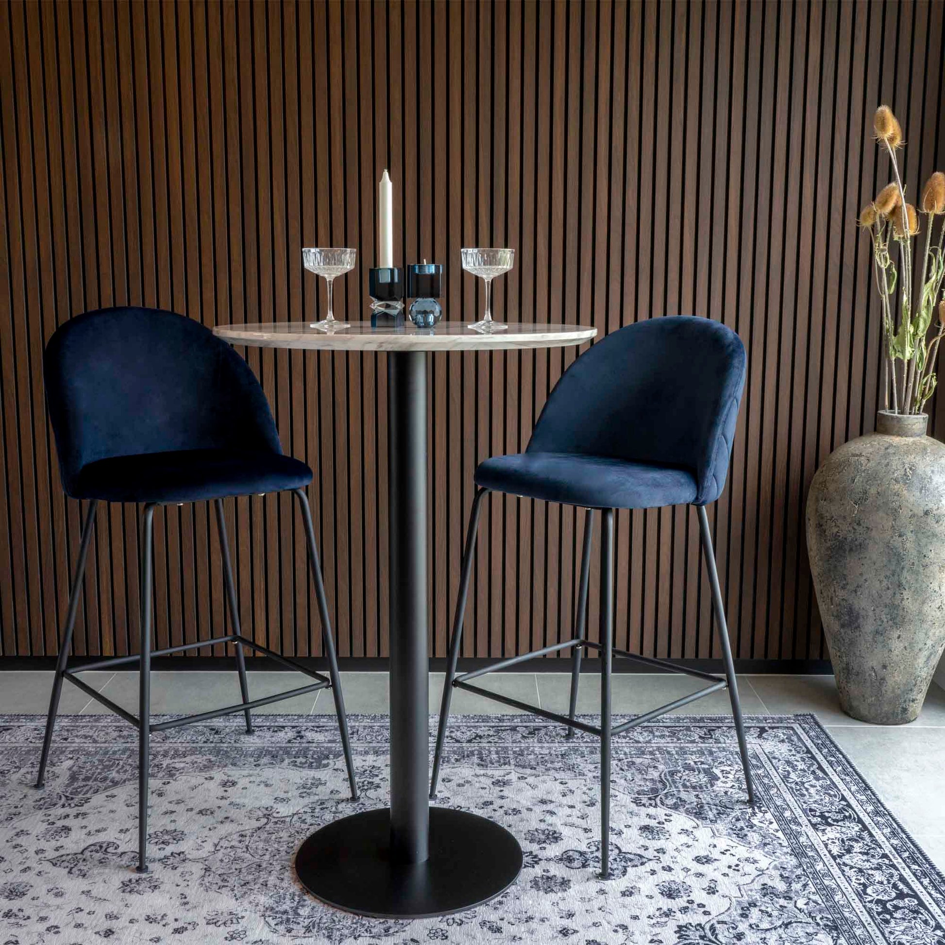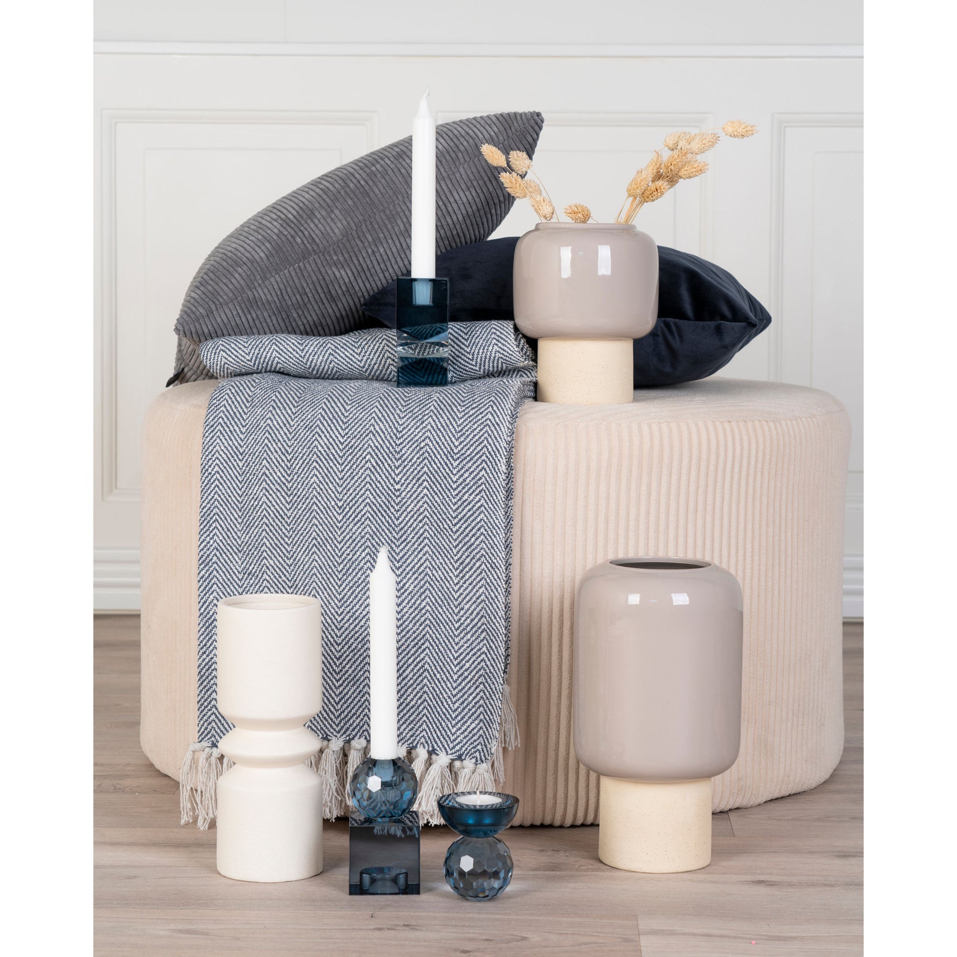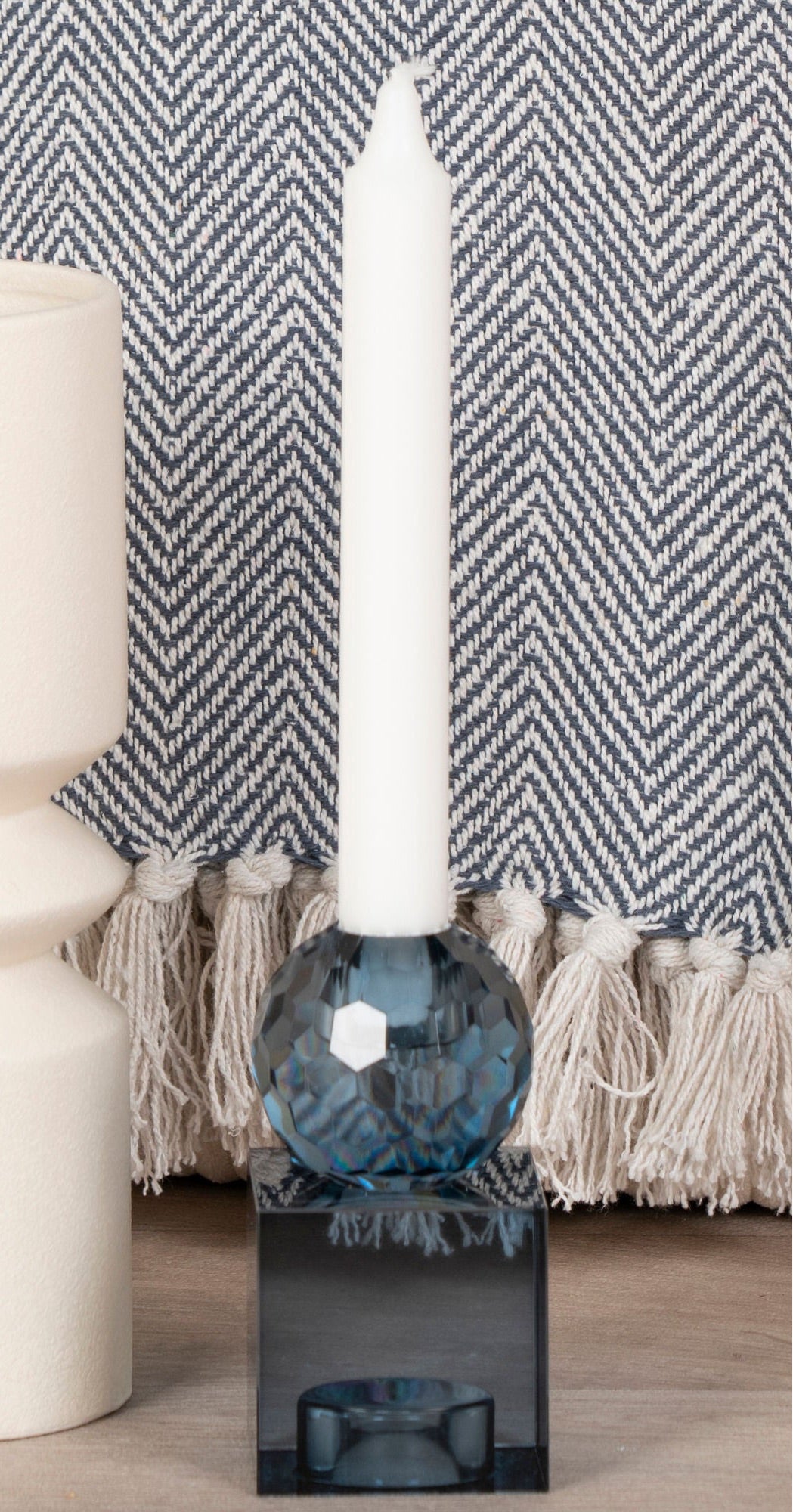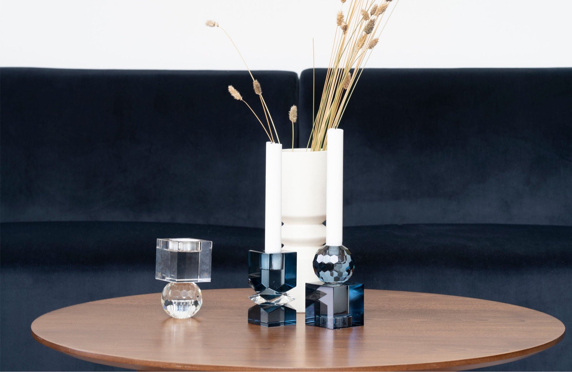 Der Kerzenhalter Mois aus blauem Glas in wendbarem Design