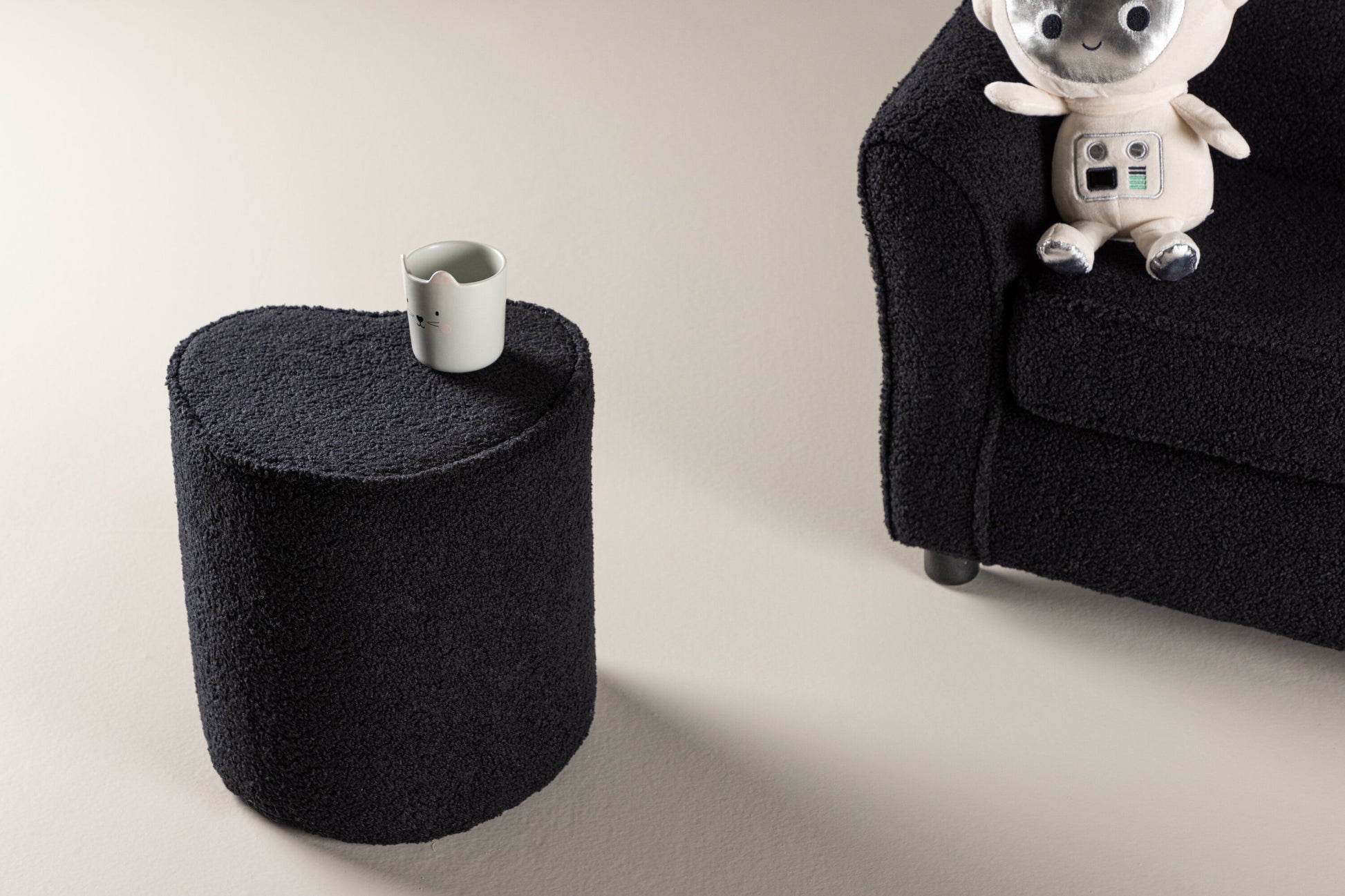 Heart Kids Pouf, Schwarz, Teddypolyester