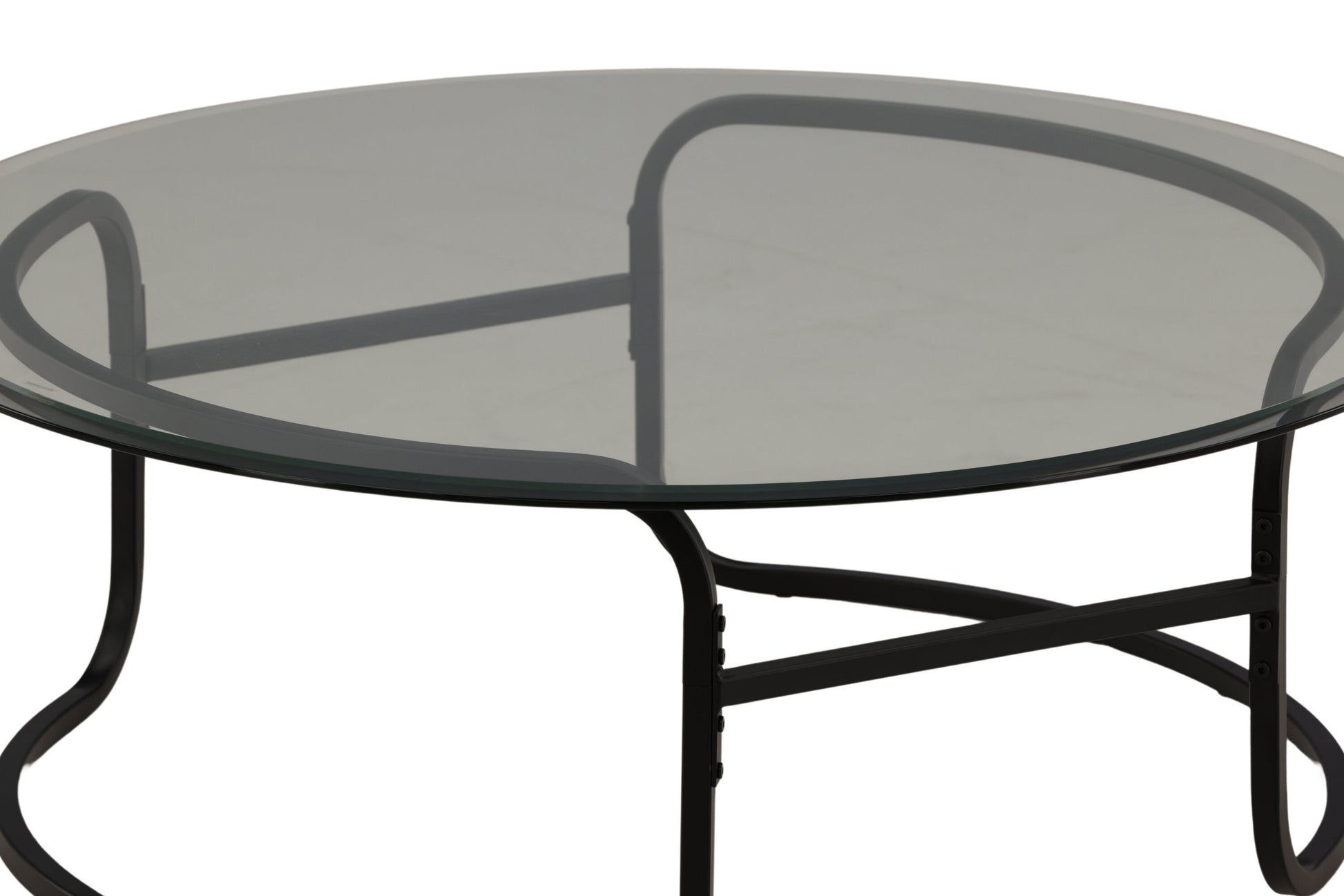 Der Couchtisch Lomma kombiniert Eleganz und Funktionalität in einem ansprechenden Design. Die klare Glasplatte präsentiert gekonnt das darunter liegende, dekorative Untergestell aus schwarzem Stahl, das für einen optischen Akzent sorgt.
