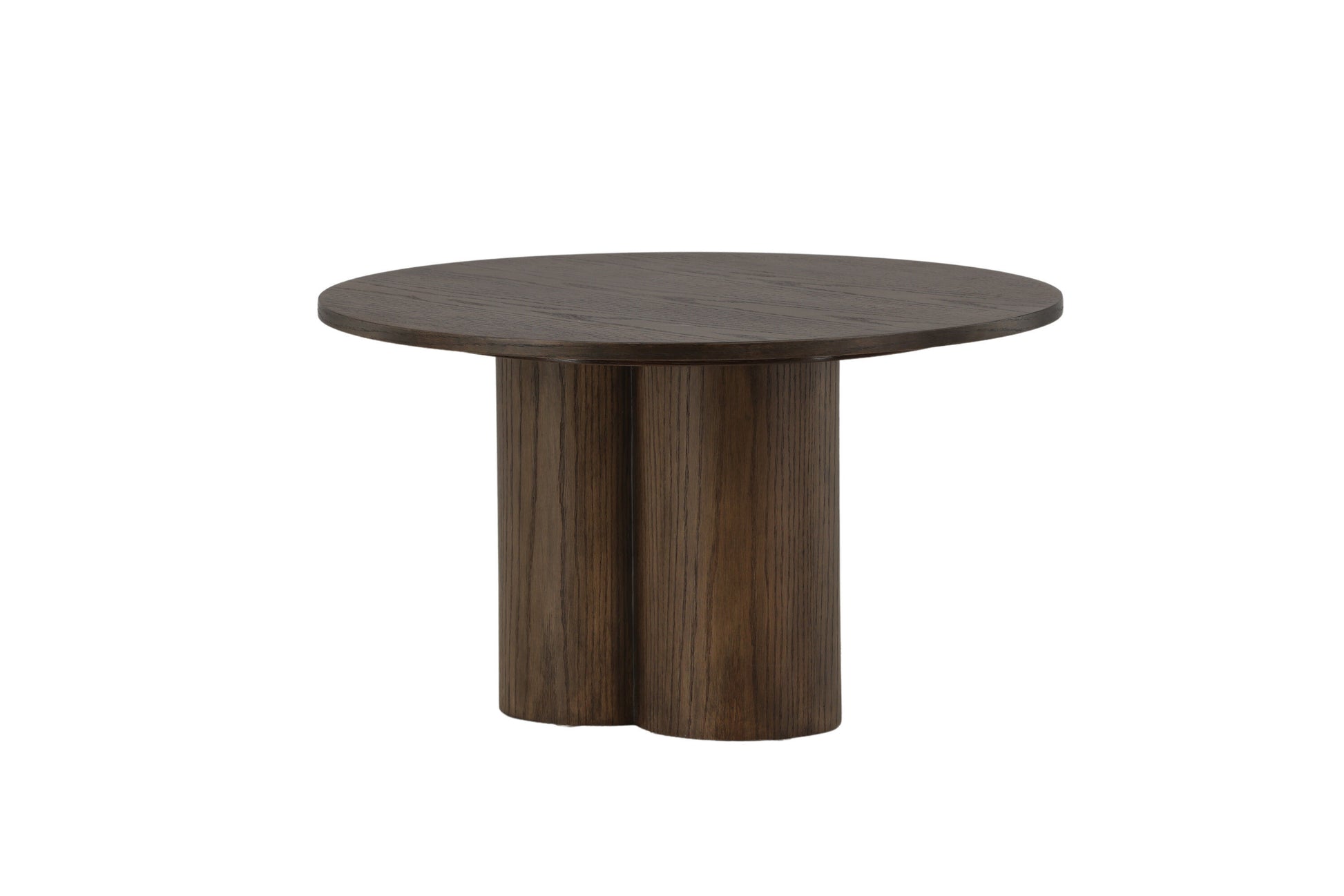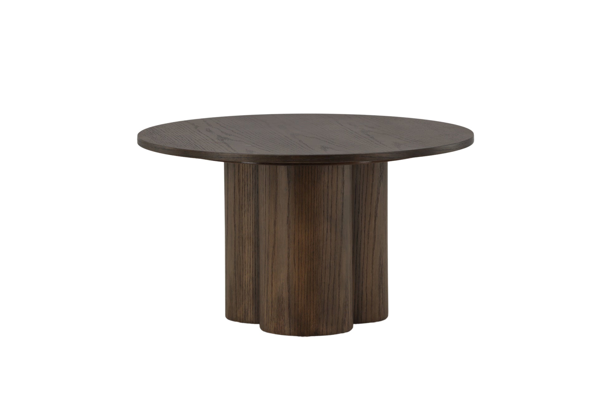 Der Olivia Couchtisch kombiniert eine runde Tischplatte in dunkelbrauner Holzoptik mit einem markanten Säulenfuß-Design, das Stabilität mit modernem Stil verbindet. Die tiefbraune Farbgebung verleiht dem Tisch eine edle, warme Ausstrahlung und passt zu verschiedenen Wohnkonzepten.