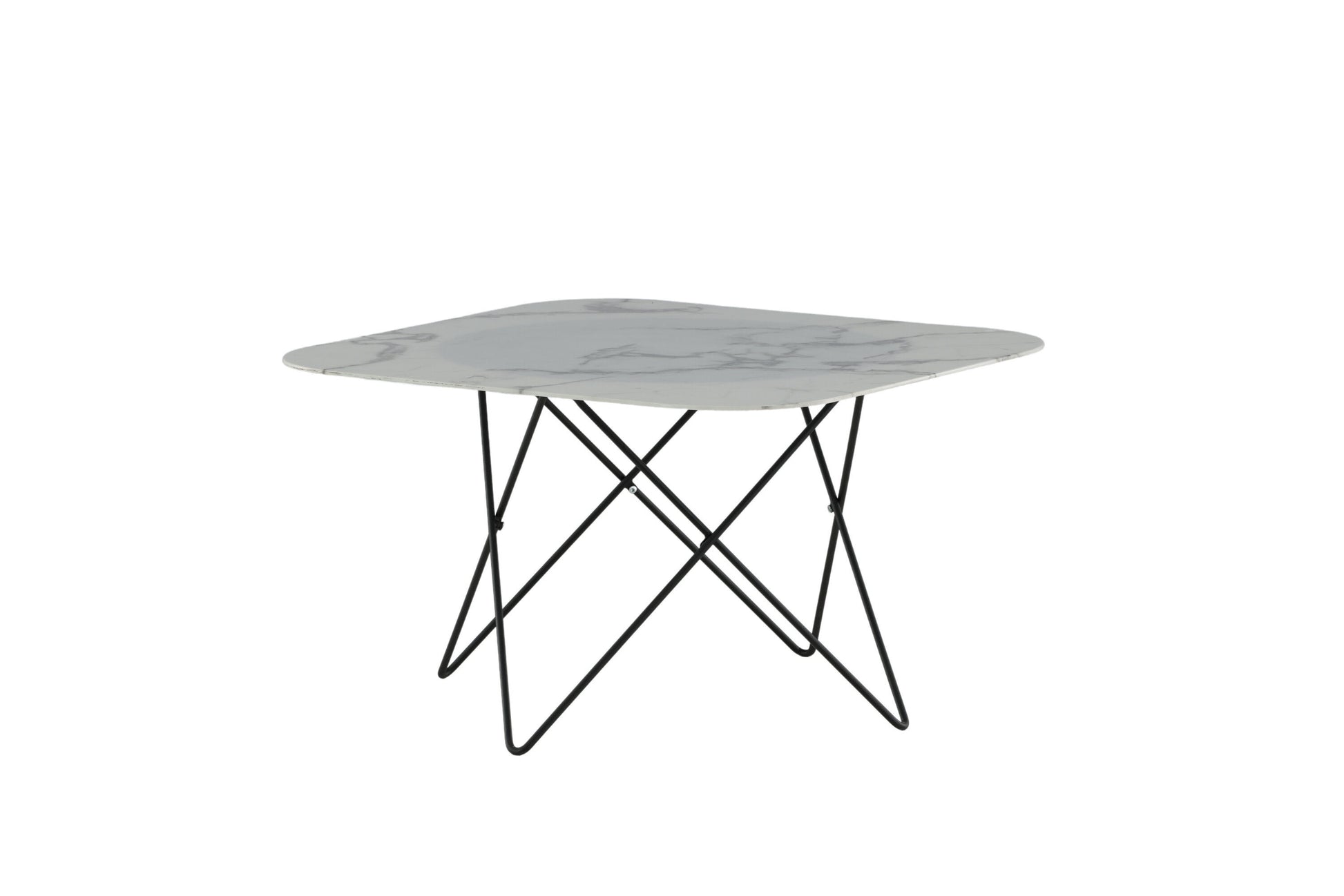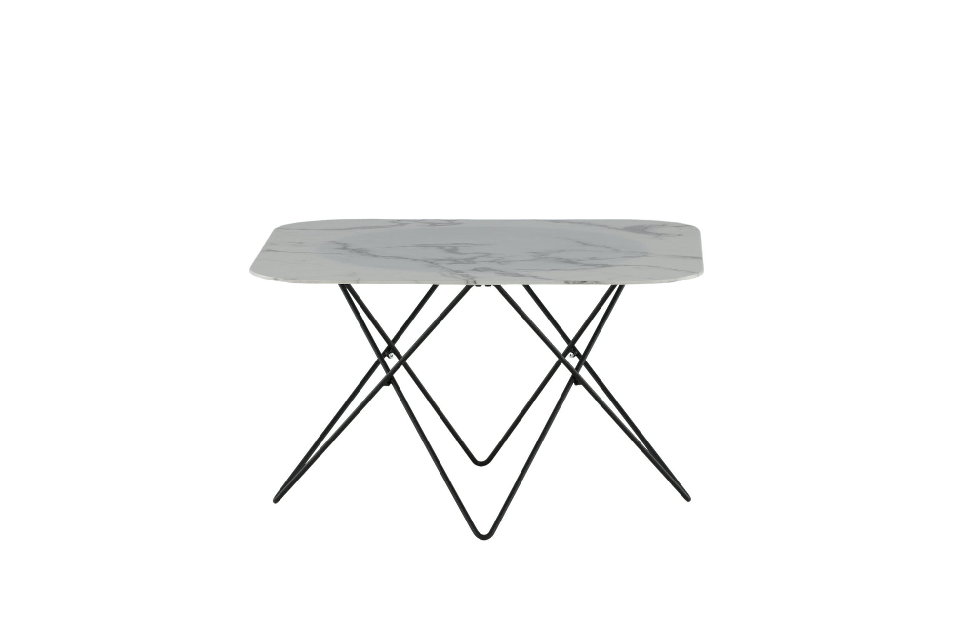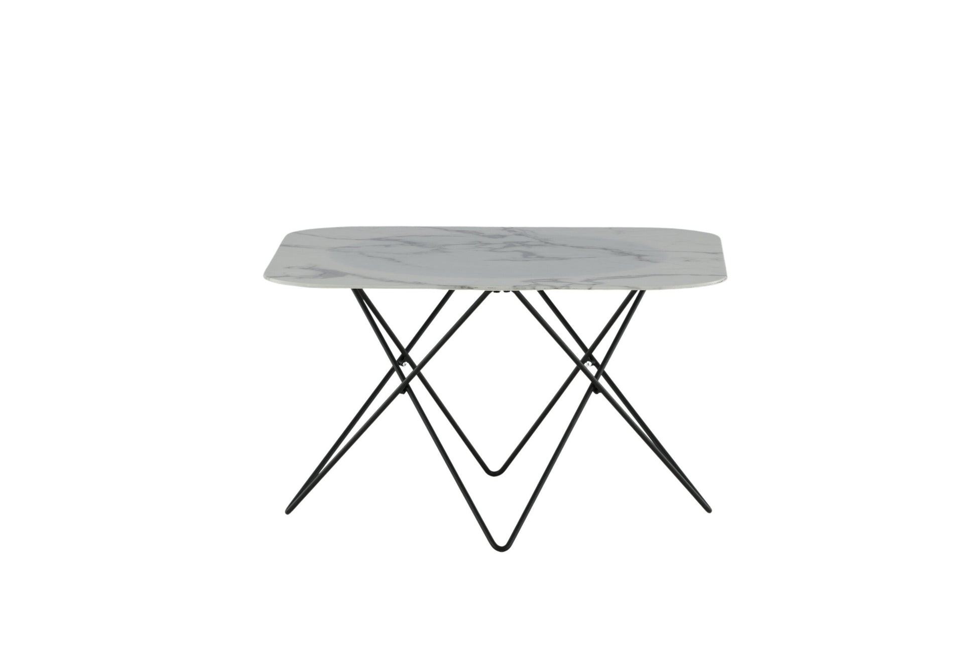 Der Couchtisch Tristar überzeugt mit seinem klaren, minimalistischen Design und seiner eleganten Ausstrahlung. Die rechteckige Form mit leicht gerundeten Ecken verleiht ihm eine moderne Weichheit, während der Rahmen aus schwarzem Metall und die Tischplatte aus weißem Marmorglas eine dynamische Note in jedes Wohnzimmer bringen.