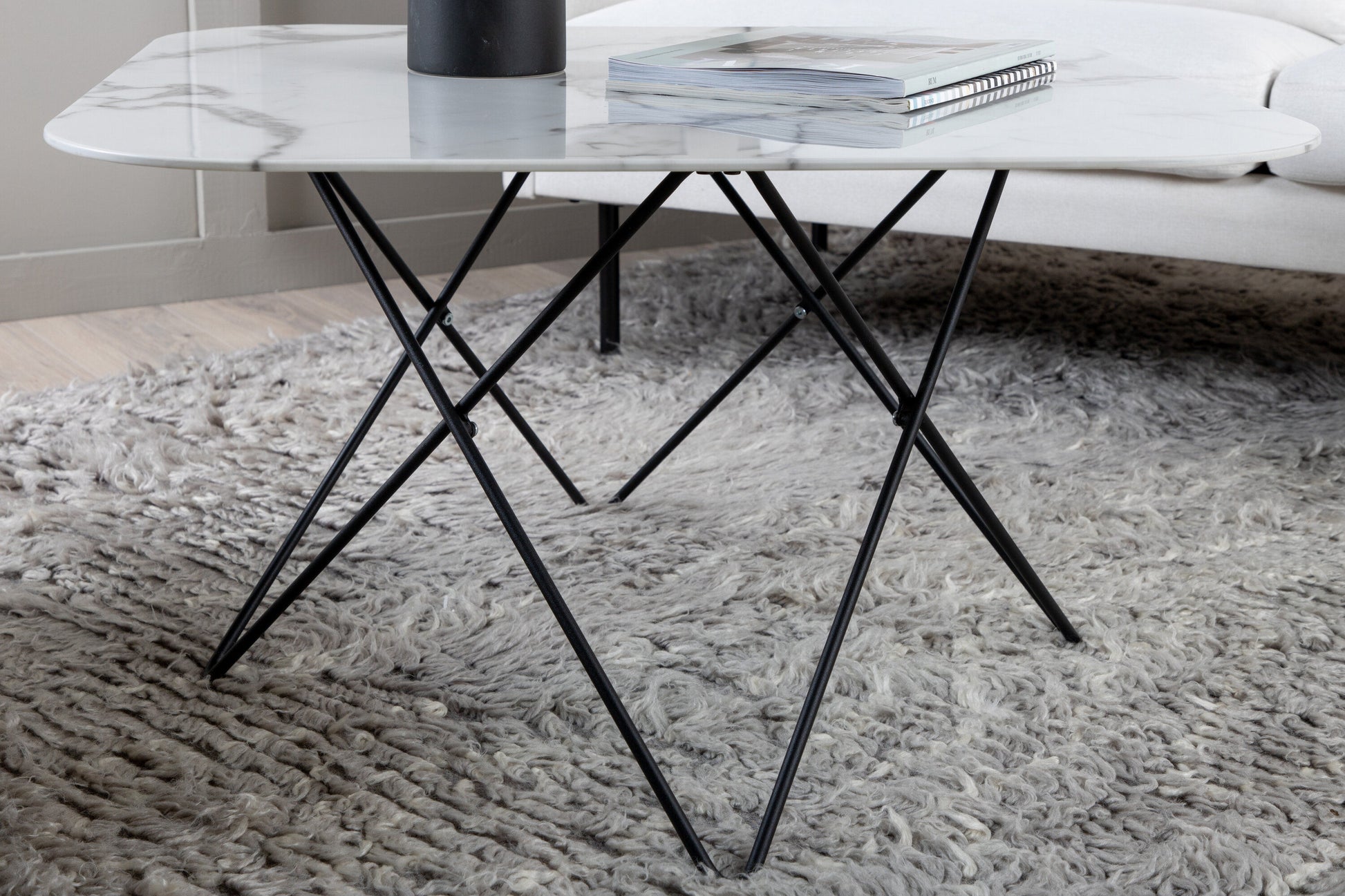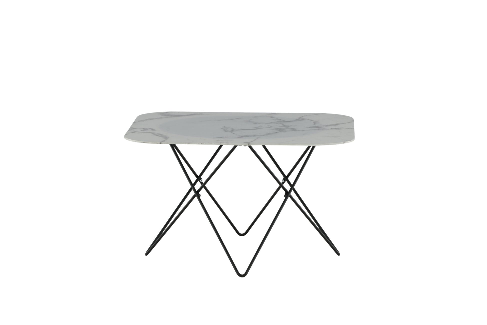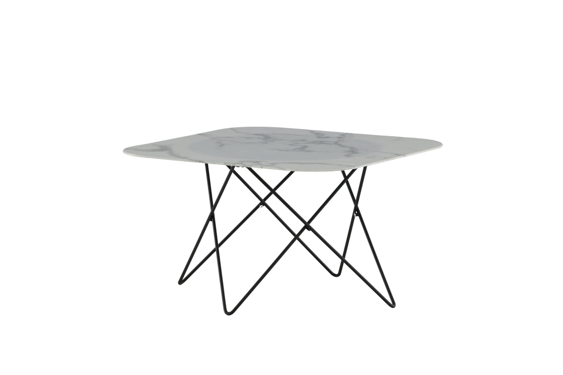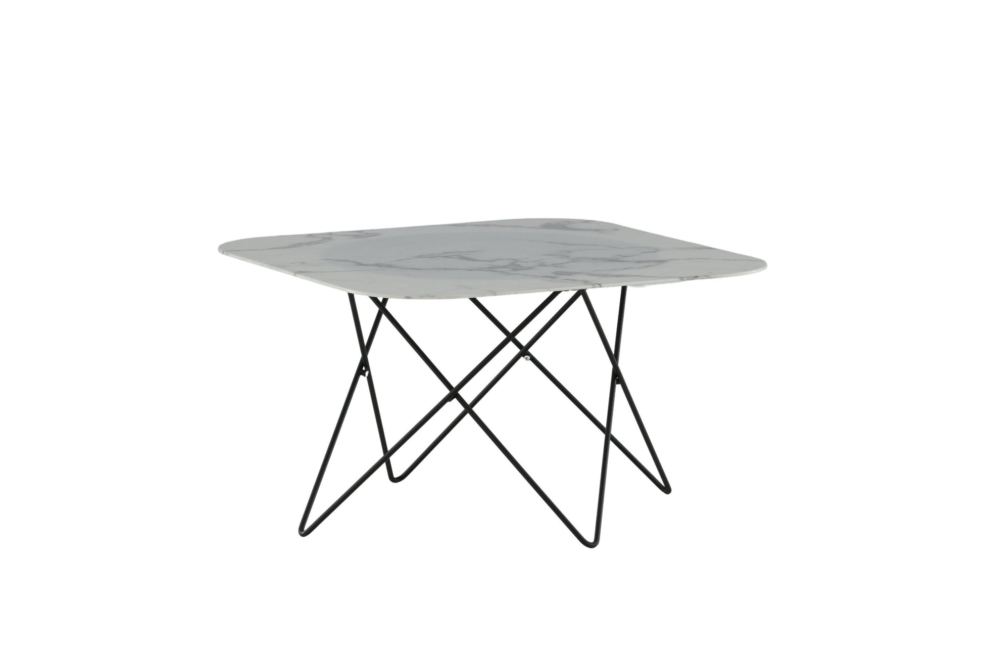 Der Couchtisch Tristar überzeugt mit seinem klaren, minimalistischen Design und seiner eleganten Ausstrahlung. Die rechteckige Form mit leicht gerundeten Ecken verleiht ihm eine moderne Weichheit, während der Rahmen aus schwarzem Metall und die Tischplatte aus weißem Marmorglas eine dynamische Note in jedes Wohnzimmer bringen.