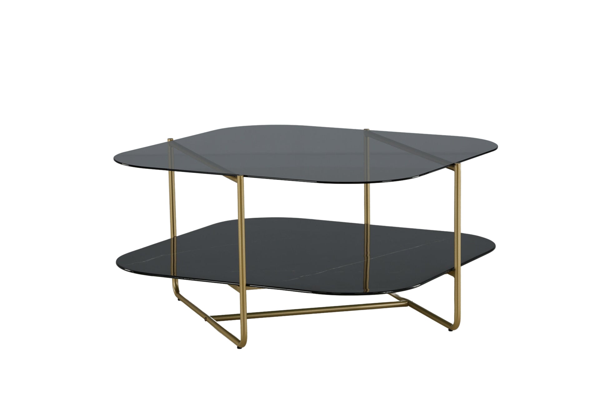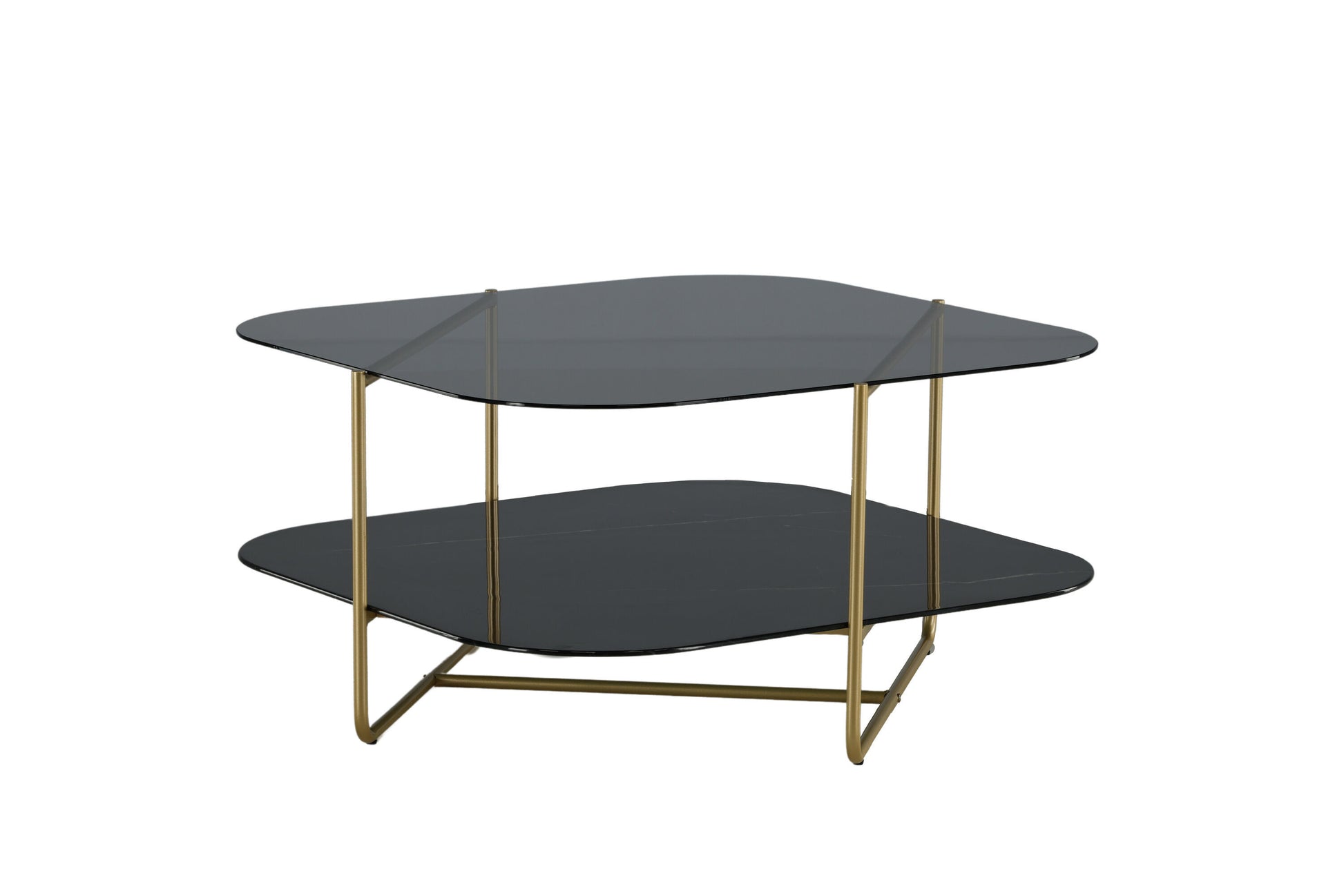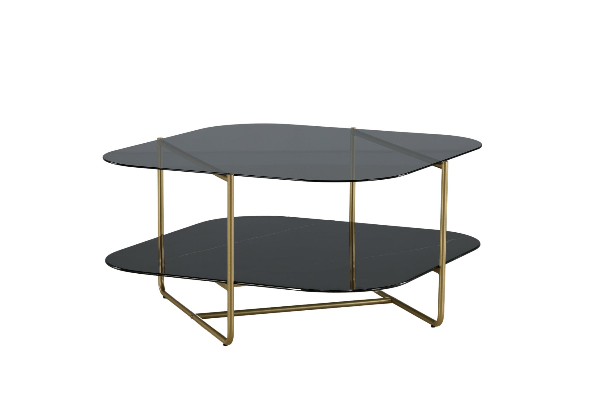 un-line Sofatisch aus Glas und Stahl in Schwarz/Gold