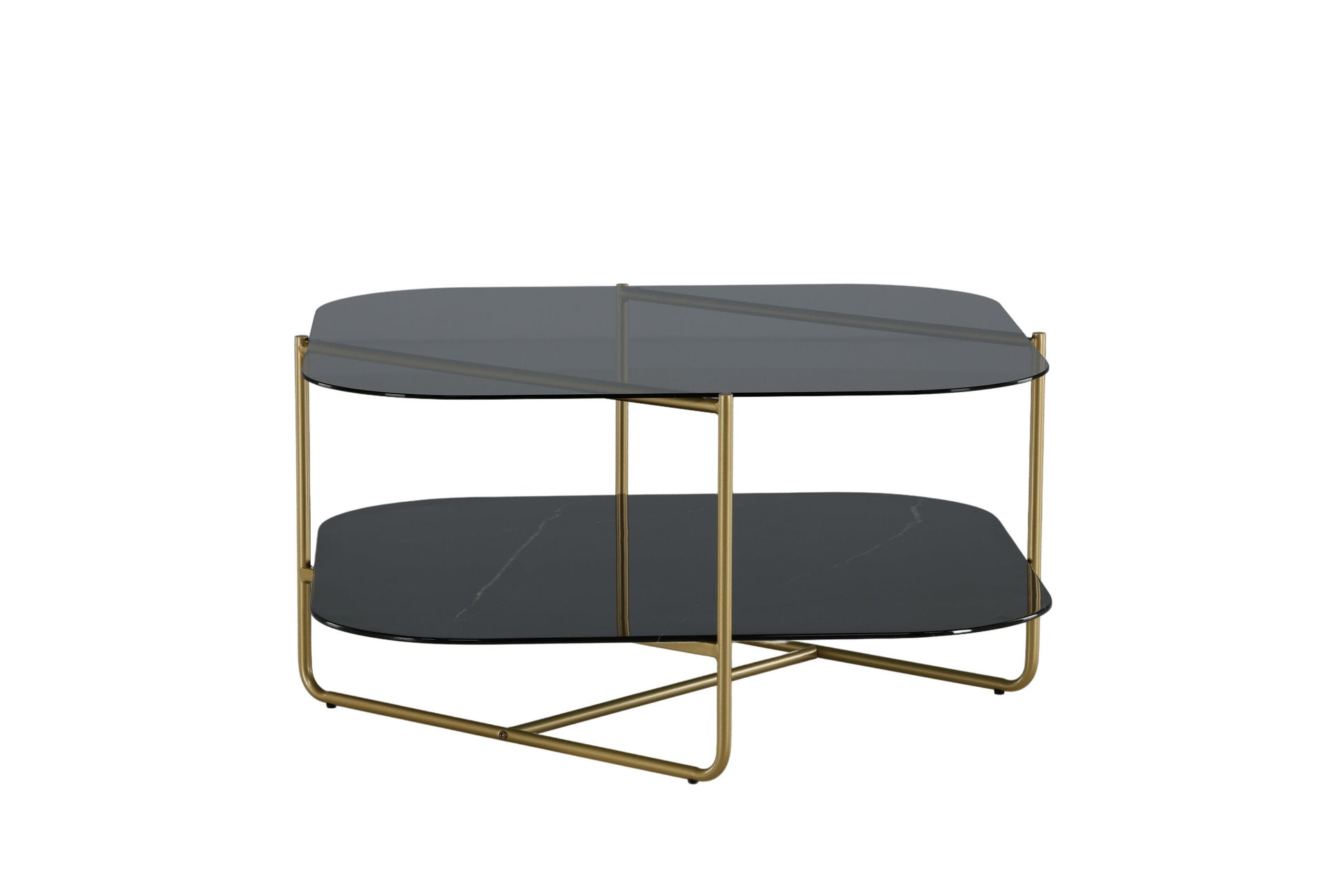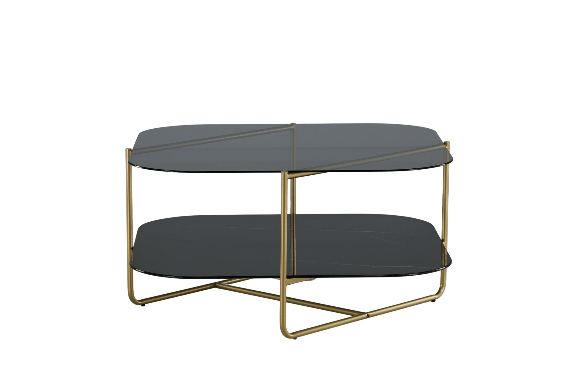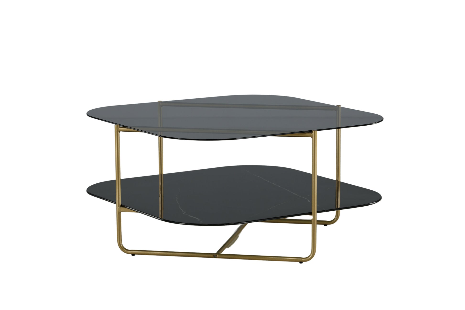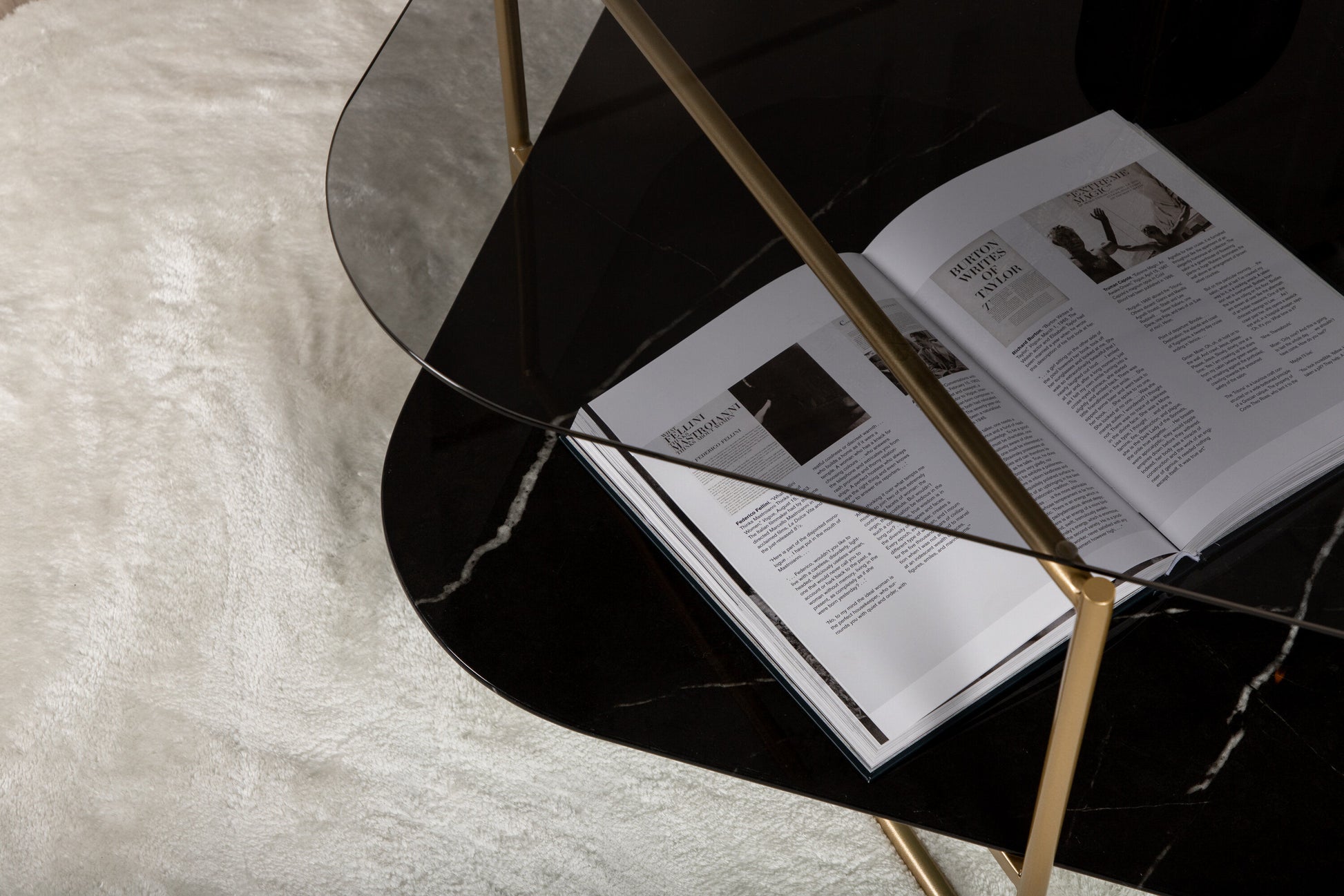 un-line Sofatisch aus Glas und Stahl in Schwarz/Gold