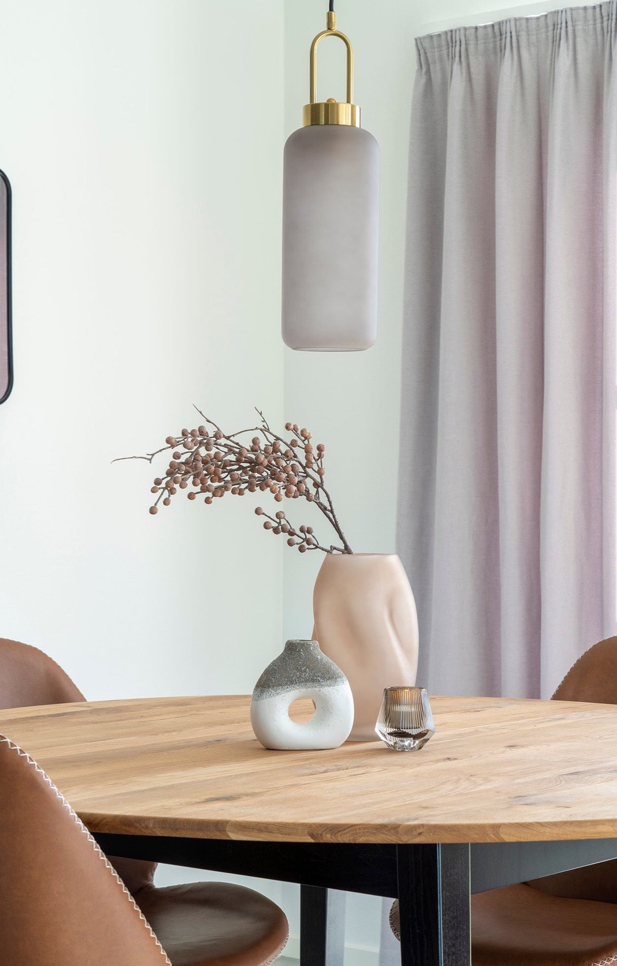 Die Tory Vase aus Keramik ist in weißer und grauer Farbe gefertigt