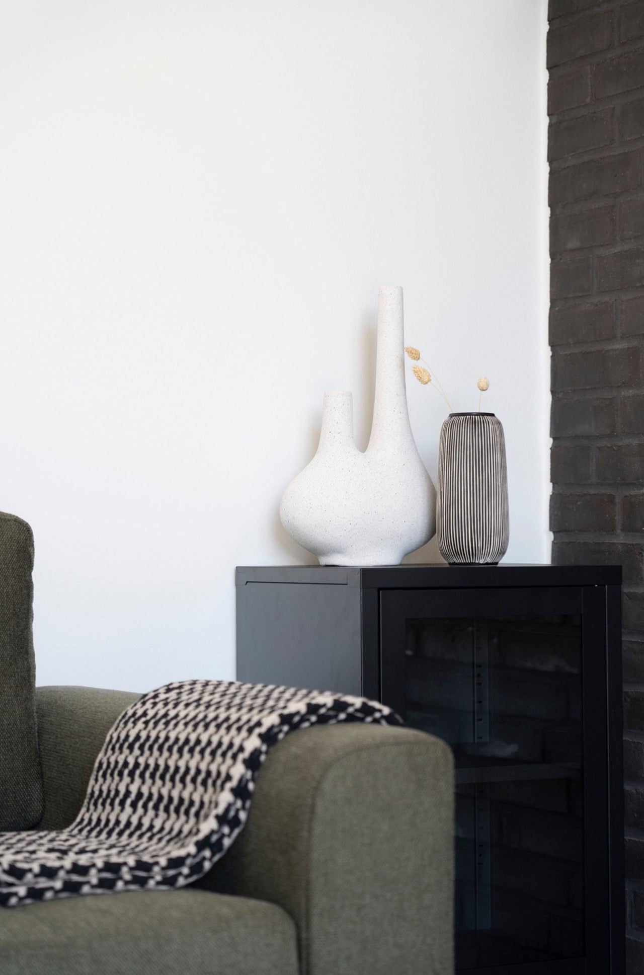 Die Tokyo Vase aus Keramik ist in schwarzer und weißer Farbe gefertigt